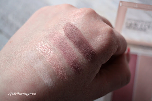 Maybelline The City Kits Pink Beige Eye+Cheek Palette - палетка из восьми оттенков теней, румян и хайлайтера. Все оттенки в похожей холодной цветовой гамме. Румяна и хайлайтер бренд предлагает также использовать и как тени, никто ничего не запрещает :)). У теней очень хорошая пигментация, однако они также сильно сыпятся, если их набирать кистью, как и тени в предыдущих палетках. Сыпятся и при нанесении, так что в начале делаем макияж глаз, потом накладываем тон.